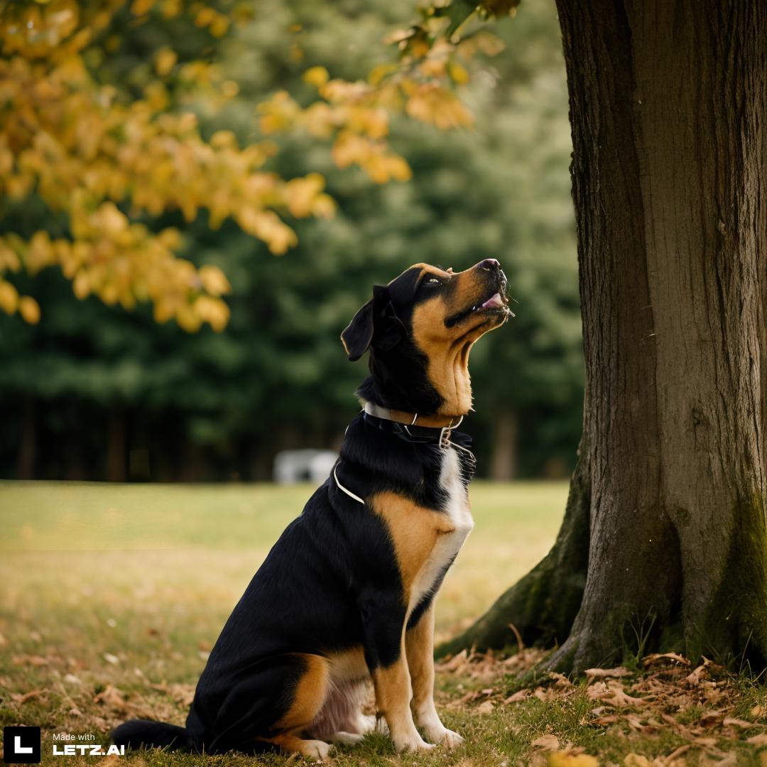 ✅ @mydog dog in front of a tree