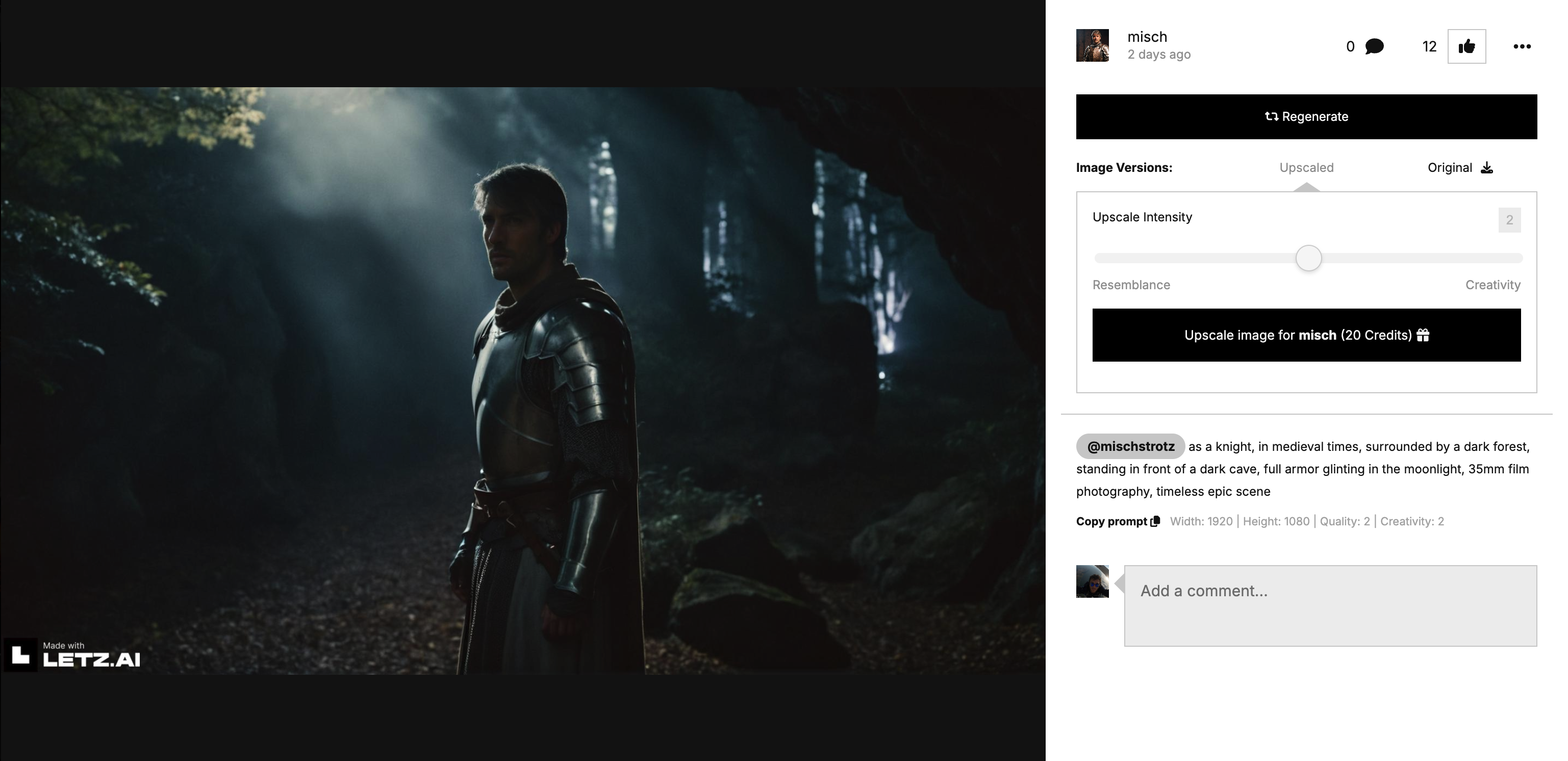This new functionality truly brings your LetzAI creations to the next level: It enhances your images and doubles their resolution, getting ridding of many of the issues typically present in AI images.